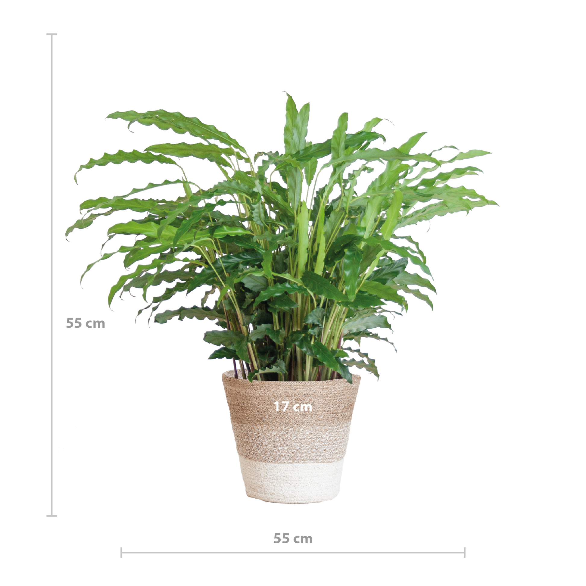 Calathea Rufibarba met Mand Lissabon wit - 55cm - Ø17