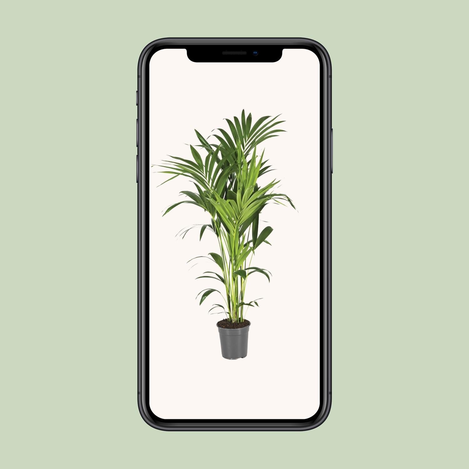 Met zijn gracieuze bladeren en glanzende bladeren voegt de Kentia Palm een elegante touch toe aan elk interieur.