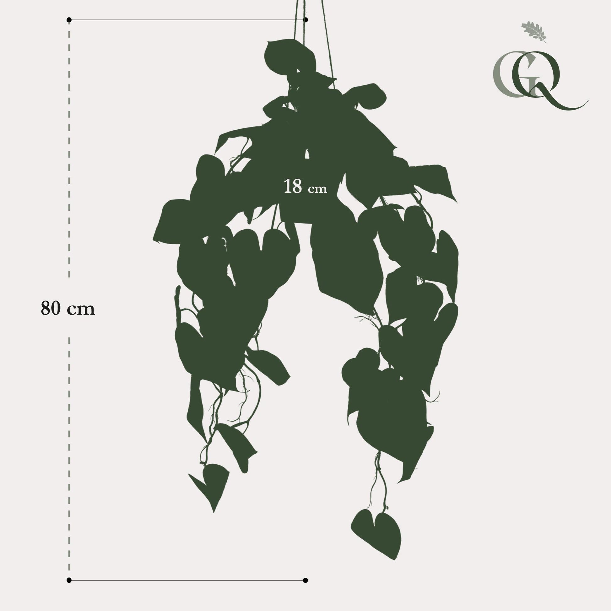De Anthurium Clarinervium heeft prachtige hartvormige bladeren met mooie witte nerven die op aders lijken. De Nederlandse naam is dan ook Aderplant. Deze grote, volle kunst hangplant is een echte blikvanger. Hij geeft elke kamer waar hij hangt, meteen een gezellige groene sfeer. Deze schitterende kunst Aderplant wordt geleverd in een leuke hangpot. Niemand heeft door dat de plant niet echt is. Eigenlijk het enige waar je dat aan merkt, is dat hij geen water nodig heeft. Ontzettend handig natuurlijk met een plant die zo hoog hangt!