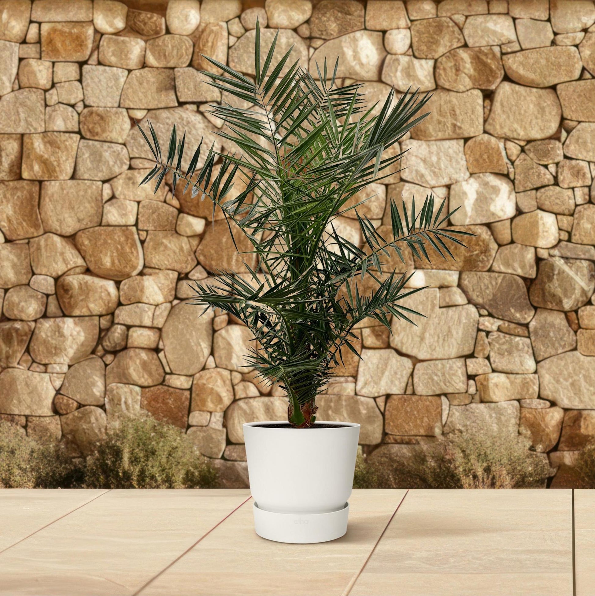 - Uiterlijk van de plant: De Phoenix Canariensis, ook wel Canarische dadelpalm genoemd, heeft sierlijke, donkergroene, geveerde bladeren die vanuit een enkele stam groeien. Deze palm geeft een exotische uitstraling en is een echte blikvanger in elke ruimte.