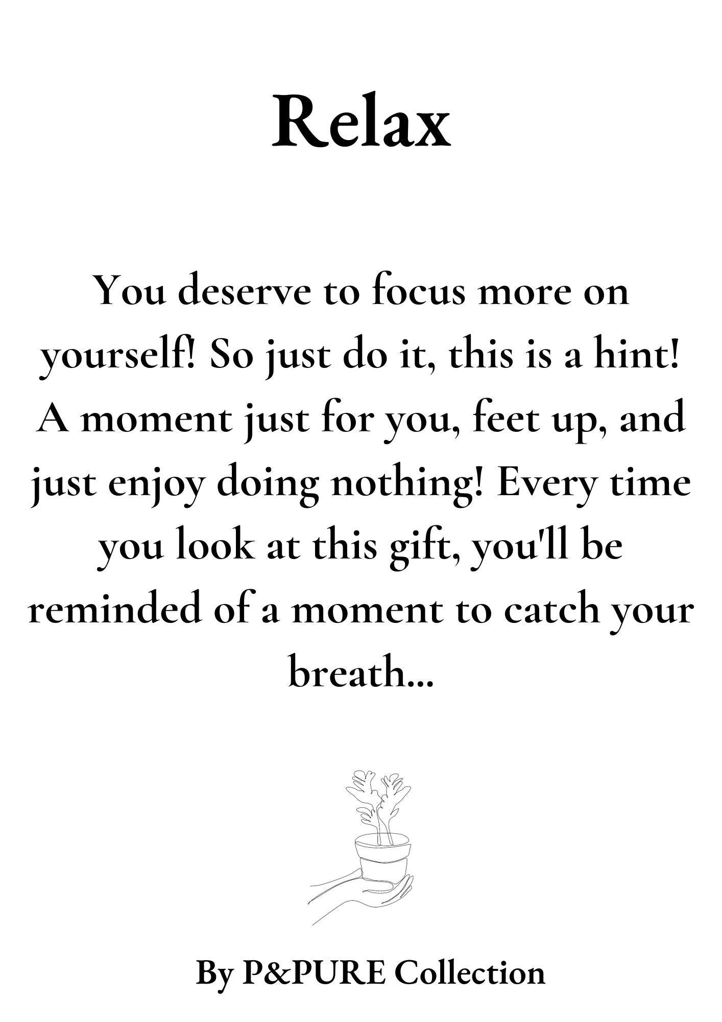 • Wordt geleverd met een stijlvolle wenskaart met de boodschap "Relax", perfect als rustgevend cadeau.